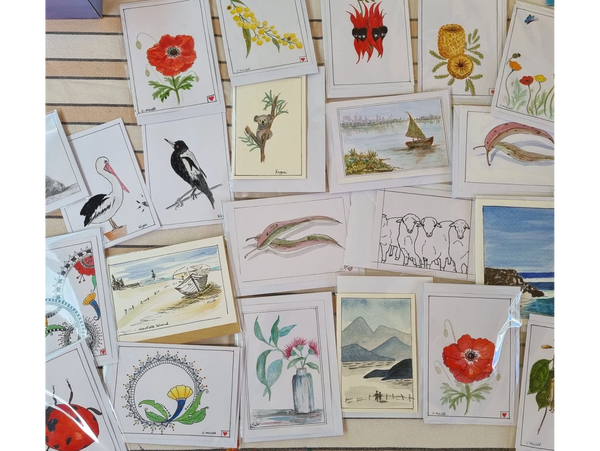The Club can supply blank cards for painting however you may prefer to bring your own watercolour paper. Cards are sold at our annual Exhibition and at Sheila Turner’s Framing shop, The Strand Arcade. Molesworth St Lismore
